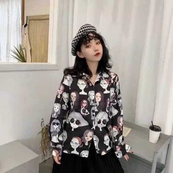 Baju kemeja cewek retro lengan panjang kmeja size l xxl atasan wanita longsleeves korean style 06203 .